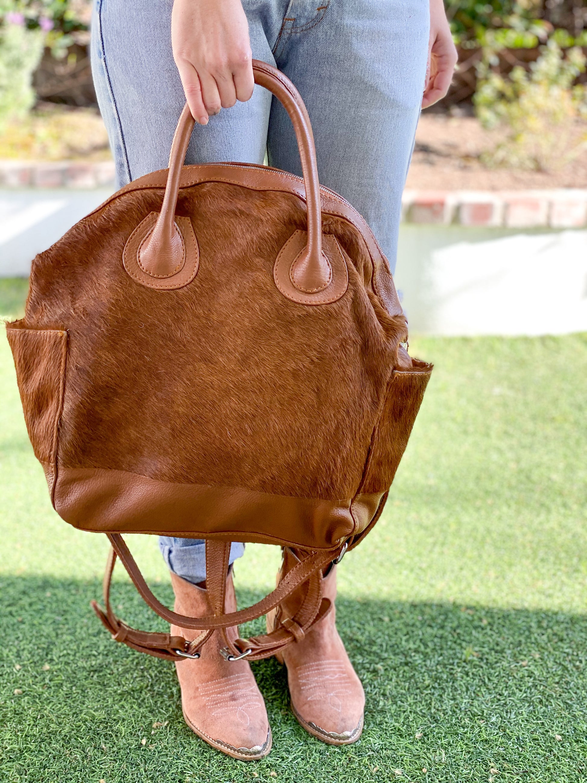 All goods made with genuine cowhide and leather. Pattern or details of cowhide will vary. Cowhide subjected to gradual wear and tear over time.